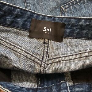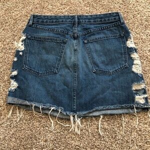 3X1 distressed Celine denim raw hem skirt. Great condition, size 26, medium wash destroyed/ distressed on the sides with a raw hem bottom.