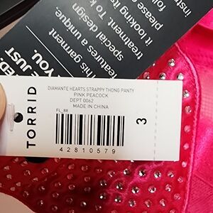 3X 22W 24W Torrid Pink Heart Rhinestone Bra Panty Set Strappy Lingerie Valentine underwire, open cups, Tanga Panty matching. NWT Torrid 2 piece set. 9×7×3 wt 10oz