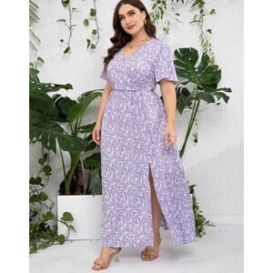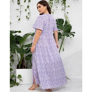 3XL 22 24 Plus Size Purple Floral Maxi Dress Empire Waist Flutter Sleeve NWT