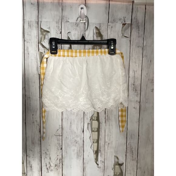 3Y Toddler Yellow Gingham Ruffle Skirt Elastic Tie-Waist Eyelet Lace