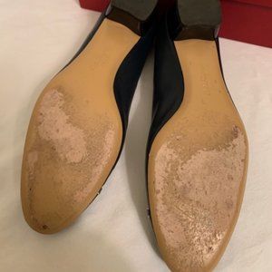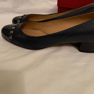 Beautiful Nave Ferragamo Navy low healed leather pump. Extremely comfortable