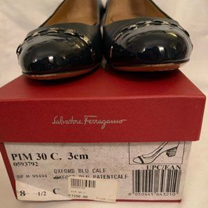 3cm Salvatore Ferragamo Navy Blue Block Pump Heel
