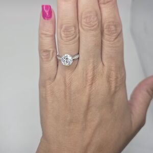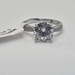 This stunning silver moissanite diamond ring adds a touch of elegance to any outfit. Perfect for special occasions or everyday wear. featuring a 3ct VVS1 D Center Stone. The ring is djustable. sizes 5-9