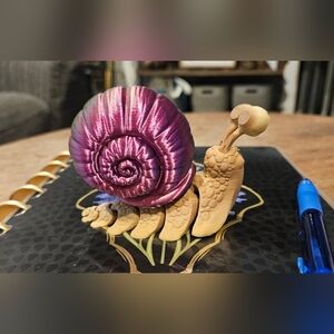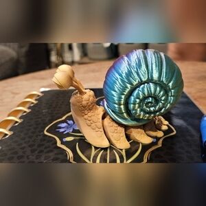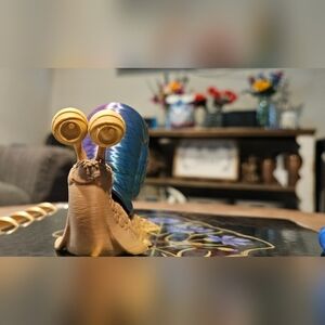 toy, fidget, metallic, bookshelf, shelf, display, turbo, slug, snail, knick knacks, 3d printing, print, garden, insect, bug, critter