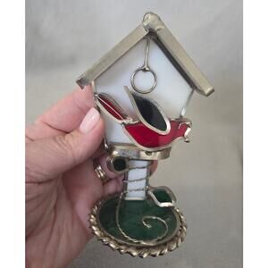 3d Stained Glass Suncatcher Bird House Red Bird Cardinal White