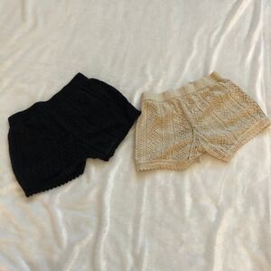 👗👕👖 3 for $15 Two pair of Wonder Nation crochet shorts. Shell is 86% cotton, 14% nylon. Linining is 100% polyester. Elastic waist with draw string. Colors are black and beige. Shorts are in excellent condition, no sign of wear. Size Large (10-12).