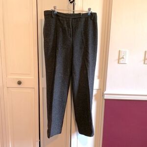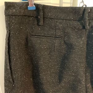 GUC grey multicolor (dark, charcoal grey with white specs) pants from BCBG MaxAzRia. Only flaw is the clip latch needs to be stitched back in place and secured. Material is 46% wool, 33% rayon, 15% nylon, and 6% silk. Measurements are 17 inches across at the waist, 39 inches long, 29 inch inseam, and 16.5 inch rise.