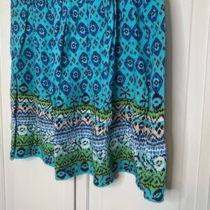 This is such a cute skirt with a relaxing color scheme and pattern. It must be sized in junior sizes because it fits like a small. I normally wear a size 2 and it fits me, but is tight going over my hips.