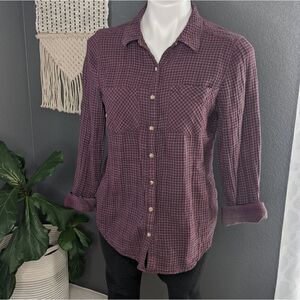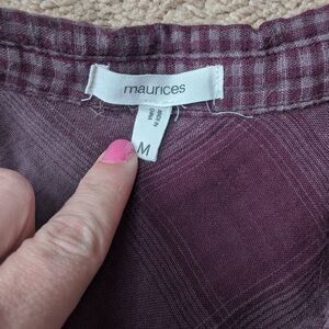 Maurice's button down checkered collar shirt. Two front pockets. Size medium, minor piling and wear.