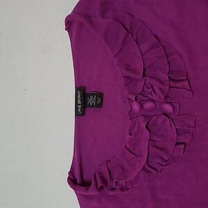Lane Bryant plum colored ribbed top with ruffled neckline size 18/20. Very stretchy.