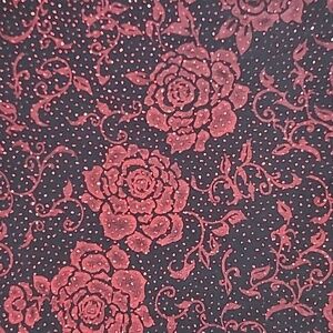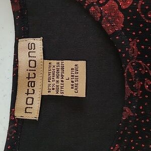 Notations women's Semi-Sheer top with a sparkly red rose pattern on a black background size Large. Perfect for any occasion.