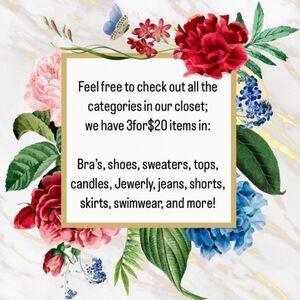 All items with 3FOR$20 in the title are for a limited time mix and match 3 for $20!!! Save big! Bundle or like the items I will send the offer.