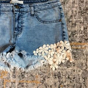 3 for $25 SUPER CUTE DENIM SHORTS WITH FLOWER DETAIL! SZ L