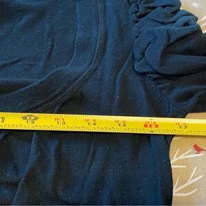 This is a super cute button-up black sweater by Decree, in size L. It’s got a scoop neck, and half sleeves, with puffy shoulders. It’s adorable!! I will throw it in the dryer to remove stray lint and fibers. See photos for measurements.