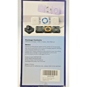 This 3-in-1 magnetic wireless charger offers portable convenience for charging your smartphone, smartwatch, and earbuds all at once. With a foldable design and powerful magnets, it supports fast wireless charging (15W/5W/3W) and is perfect for travel or nightstand use. Includes USB-C cable and user manual. Compatible with MagSafe-enabled and Qi-compatible devices. Sleek black model. Ideal for minimal tech setups or on-the-go charging.