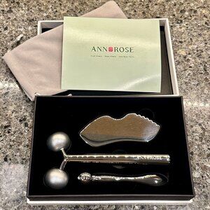 This is a wonderful set of 3 heavy facial massage/gua sha tools that comes in a beautiful box -- perfect for gifting to the skincare junkie in your life or as a nice little present to yourself.