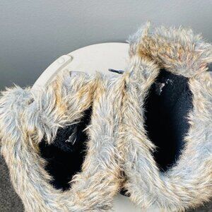 👢Light Grey Leather Upper W/ Faux Fur Trim & Inner Lining - Rubber Lowers For Protection