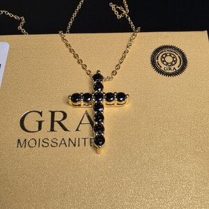 π€ 3.mm Black Moissanite Cross Necklace β Gold-Filled π€