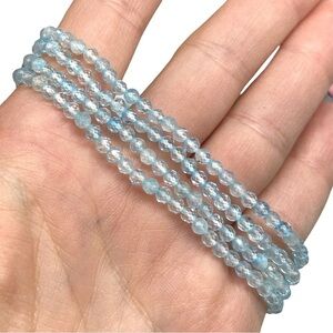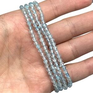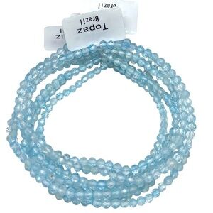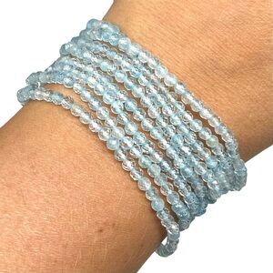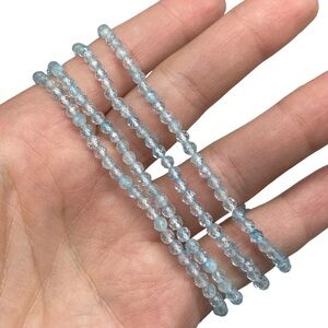 3mm Blue Topaz Faceted Stretch Bracelet Light Baby Blue Natural Stone Gemstone