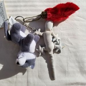3-pack Keychain Set, Wolf, Rabbit Foot, Lizard