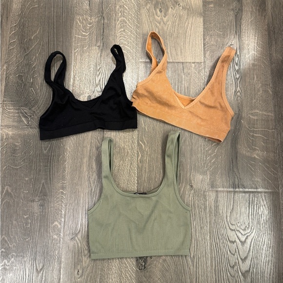 Chic olive ribbed bralette by Zara & target. Ideal for layering. All in great condition lightly worn. Comfortable and cute! Let me know if you have any questions!