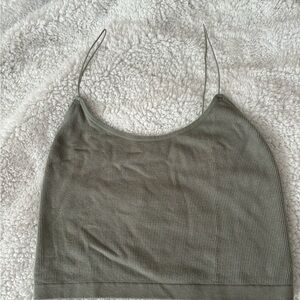 Ribbed crop tops in the colors mocha, sky blue, and olive Fuzzy on the inside All size large $8 each $15 for 2 $20 for all 3 OBO