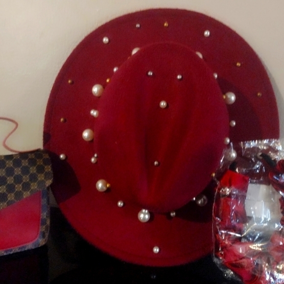 ONE BURGUNDY PEARL FEDORA SIZE 56CM/57CM WT PULL STRING FOR ADJUSTMENT