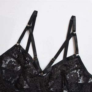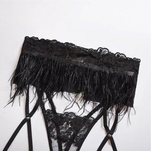 3pc Black Lace Feather Lingerie Set