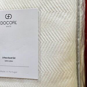 3-pc DOCOFIL Portugal Cotton Chevron King Size Cotton Duvet Cover (Creamy White)