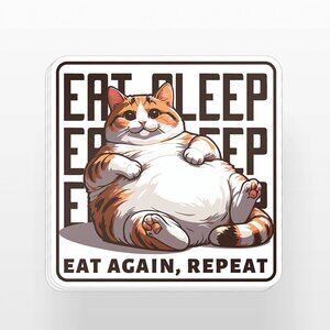 Bring some feline humor to your everyday items with this adorable "Eat Sleep Repeat" cat sticker featuring a contented orange and white tabby cat in full relaxation mode. This charming design captures the essence of cat life with its humorous text and lovable illustration, making it perfect for showcasing your love for cats and their laid-back lifestyle.