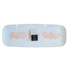 Add a festive touch to your Spring table with The Farmhouse by Rachel Ashwell Pink Easter Egg Serving Platters! This brand-new 3-pack includes three 17.5-inch plastic platters, each featuring a charming pink Easter egg motif on a crisp white background. Perfect for Easter gatherings, spring parties, or seasonal décor, these lightweight trays are ideal for serving treats, snacks, or desserts. Please note: not microwave or dishwasher safe. A beautiful and functional addition to any Easter celebration!