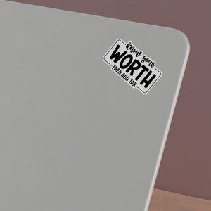Express your confidence with this empowering "Know Your Worth Then Add Tax" sticker. This stylish black and white vinyl decal features modern hand-lettered typography in a clean, minimalist design that makes a bold statement wherever you place it.