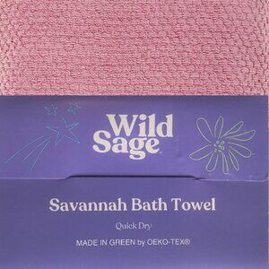 Mauve Pink color Wild Sage™ Savannah Quick Dry 90% Cotton 10% Polyester ... one Bath Towel + one Hand Towel + one Washcloth. Bath towel is 30 x 54 inches. Hand towel is 16 x 28 inches. Washcloth is 13 x 13 inches. Machine washable. Condition is brand new with original retail tags.