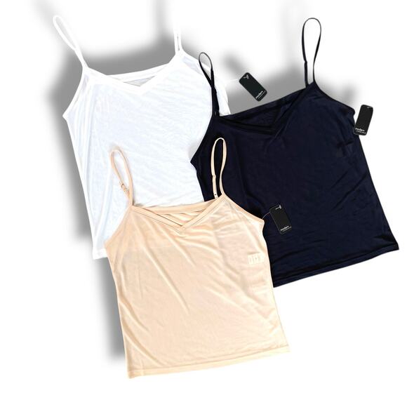 3pc Modern Movement Cool Touch Camisole Sz M Black Nude White V Neck Adj Straps