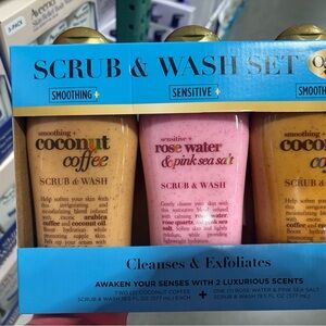 3-pc OGX Scrub & Wash Set Coconut Coffee Rose Water Exfoliating Cleanser set