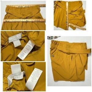 Size 6: Athleta gold paper bag shorts with tie belt. High rise 12". Zip pocket with slash front pockets and snap back pocket. Elastic back. Excellent condition.