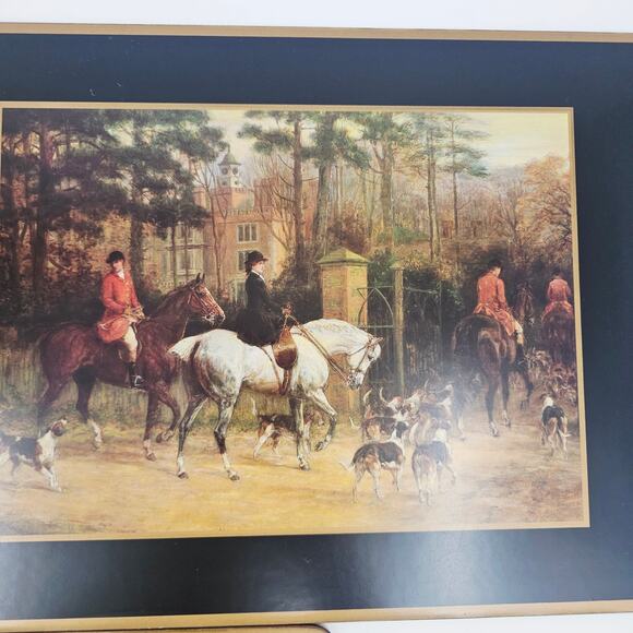 Vintage Pimpernel Tally Ho Black Hunt Hounds Meet Table Cork Placemats England XL