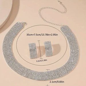 3pc Rhinestone Necklace & Earrring Set Silver Plated Inlaid Jewelry for Women