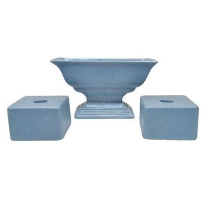 3pc Royal Haeger RG78 Light Blue Centerpiece Planter & Candleholders USA pottery