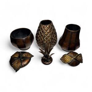 3pc Set Decorative Distressed Bronze/Gold Metal Canisters Pineapple Apple & Pear