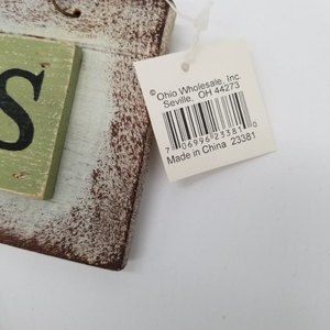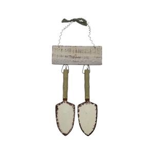 * Veggie plaque is made of wood, has wire hanger for easy hanging, 2 metal hooks for trowels