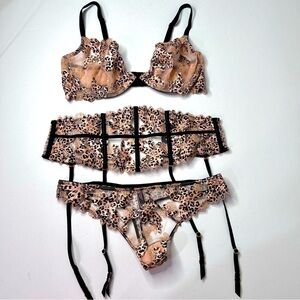 3pc Victoria’s Secret Very Sexy Sheer Leopard Bra Waist Cincher Garter & Thong