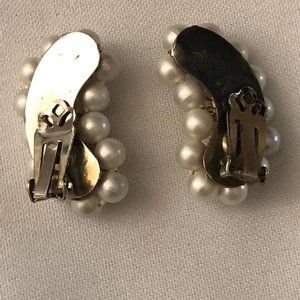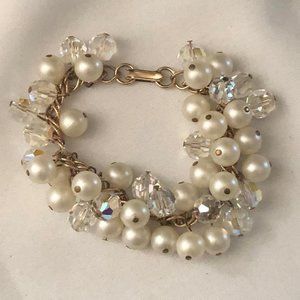 3pc Vintage White/Clear Beaded Gold Tone Earrings, Bracelet & Stauer White Necklace Costume Jewelry Set