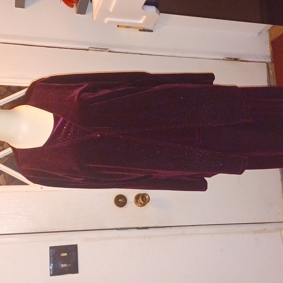 Burgundy velvet like material 3 piece set. jacket, sleeveless top and maxi skirt. size xl