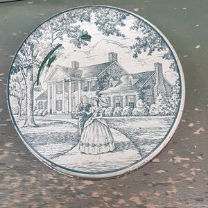 3 pc set of vintage round tins featuring elaborate ladies from the past. Large tin features Victorian romance scene and does have some corrosion as shown on the lid and on the bottom. (About the same inside.) The 2nd tin held a Hostess Fruit cake by Continental Baking Co., Inc. This tin features a lovely lady elaborately dressed presenting a cake on a platter. Vintage Hostess Fruit Cake Tin Metal 8” Round Canister 3” Tall Turquoise Gold. This tin does have some corrosion on the bottom as shown in the picture. The smaller tin features a Victorian scene of a gentleman escorting a lady with an umbrella in front of a large mansion. This tin held Old Fashion Butter mints at one time. It does have slight corrosion on the bottom as shown in picture. All 3 are lovely are ideal for storing your own baked goods or for display purposes, these tins are sure to add a touch of retro charm to any collection.