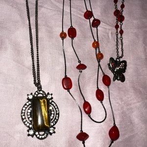 Butterfly, faux Tigers eye & red bead necklaces
