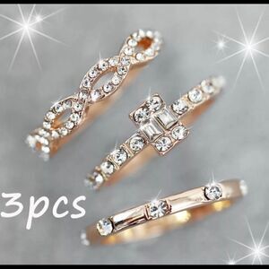 3pc ROSE GOLD PLATED Stackable Crystal Ring Set