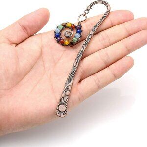 3pcs Antique Copper Metal Bookmark Beading Bookmarks with Handmade 7 Chakra Heal