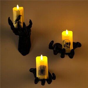 🧿👻UNIQUE DESIGN: Each hand of this horror grabber wall decor comes to life.we specially equip each hand with a candle light printed with Halloween elements, when the night falls, the light is on and the horror atmosphere is filled, the remote control can control the switch of the three candle lights, so you don't have to climb up and down to switch on and off the candle lights.