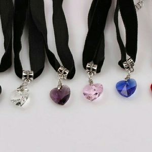 PLEASE COMMENT THE COLORS YOU WANT..3pcs set Trendy Women Black Velvet Choker Necklace Chocker Collar Punk Gothic Glass Color Crystal Heart Pendant